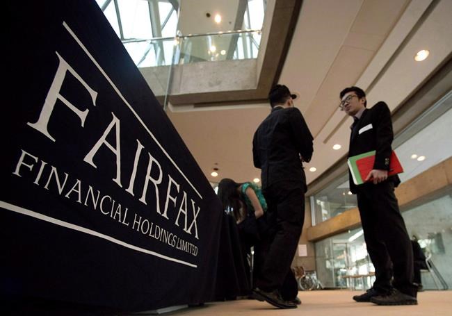 TORONTO – Shares of Fairfax Financial Holdings Ltd. were down almost 12 per cent Thursday…