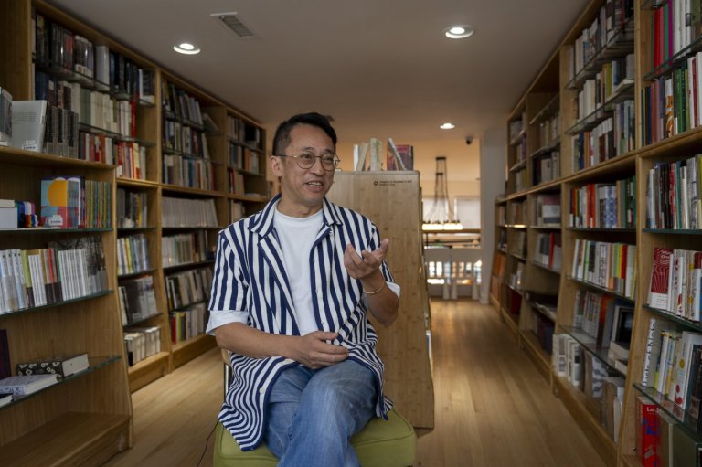 WASHINGTON (AP) — Yu Miao smiles as he stands among the 10,000 books crowded on…