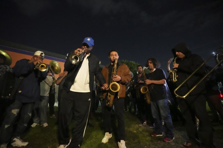 NEW ORLEANS (AP) — Blaring trumpets and joyful voices resounded in a New Orleans neighborhood…