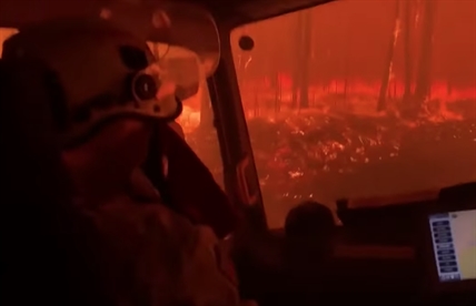 Australian firefighters were forced to shelter in their truck as an out of control wildfire…