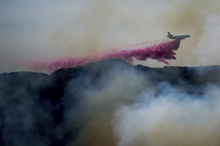 Aircraft battling fires raging through the Los Angeles area are dropping more than water: Hundreds…