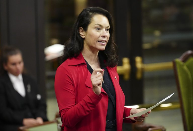 LANG, SASK. — Carla Beck steps out of her SUV with her two dogs and…