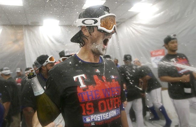 ARLINGTON, Texas – First-year manager Jeff Banister stood in a corner of the Texas Rangers clubhouse watching players celebrate, with champagne spraying all over the place.