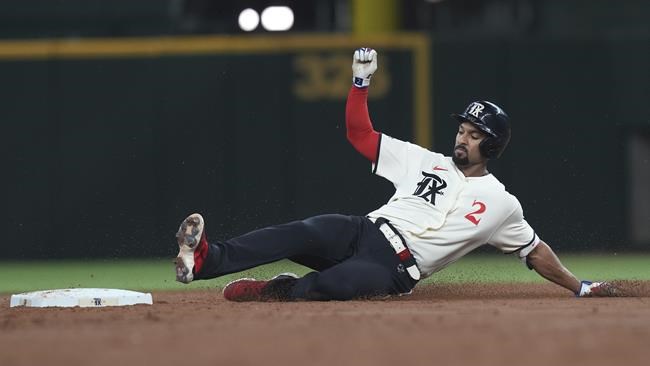 ARLINGTON, Texas (AP) — Adolis García’s MLB-leading 10th outfield assist ended Toronto’s hot-hitting first inning.…
