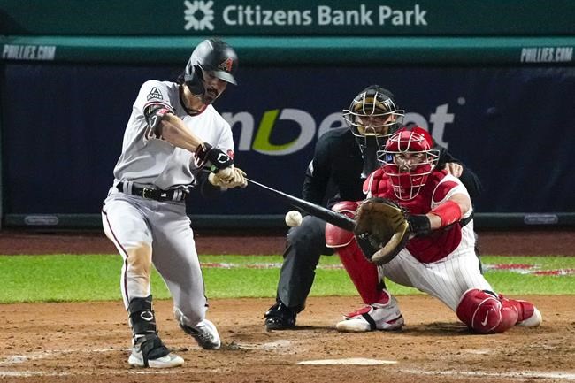 PHILADELPHIA (AP) — Corbin Carroll ducked late into the Arizona Diamondbacks’ clubhouse with his uniform…