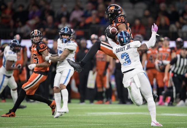 TORONTO – B.C. receiver Bryan Burnham, Saskatchewan Roughriders receiver Shaq Evans and Lions quarterback Mike…