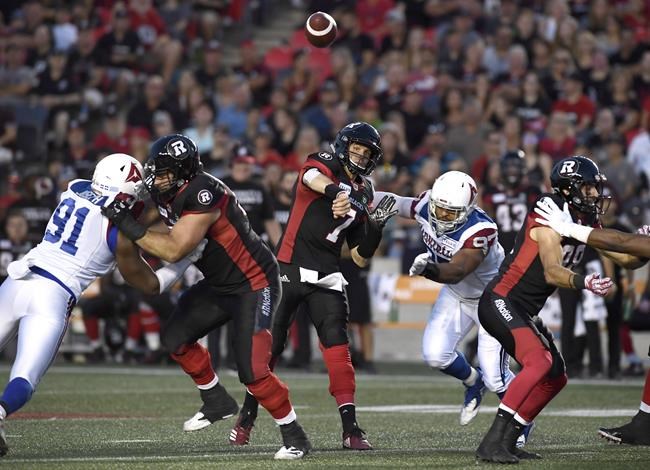 TORONTO – Ottawa quarterback Trevor Harris, Winnipeg linebacker Adam Bighill and B.C. running back Chris…