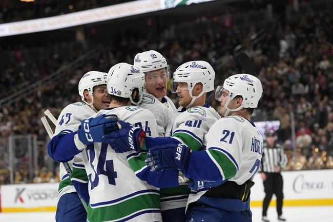 LAS VEGAS (AP) — Quinn Hughes, Phillip Di Giuseppe and Conor Garland each scored as…