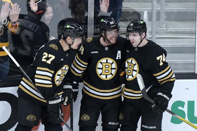 BOSTON (AP) — David Pastrnak scored on the opening shift and added two insurance goals…