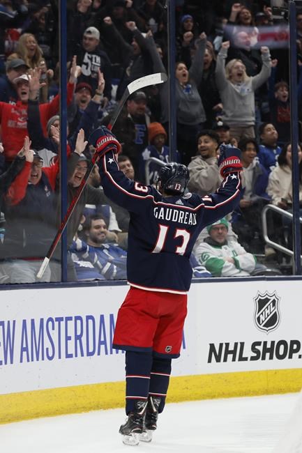 COLUMBUS, Ohio (AP) — Johnny Gaudreau tapped a rebound past Toronto goalie Ilya Samsonov 2:56…