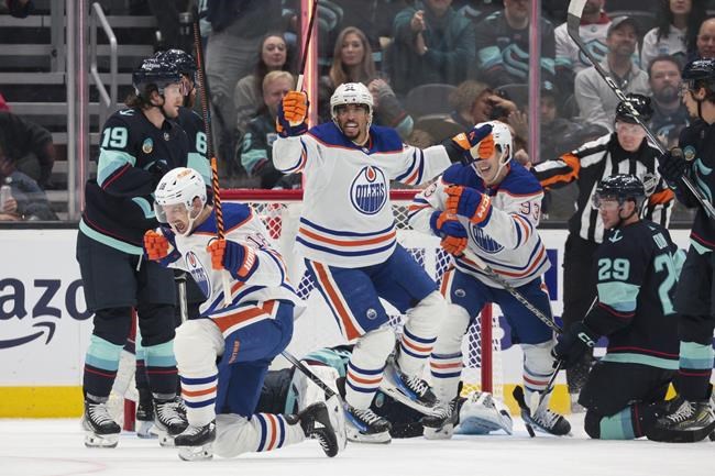 SEATTLE (AP) — Zach Hyman scored three goals in the first period and the Edmonton…