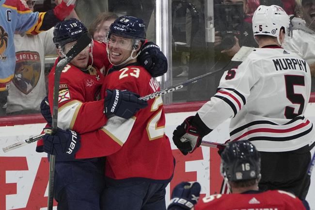 SUNRISE, Fla. (AP) — Sam Reinhart had two goals and two assists, Carter Verhaeghe scored…