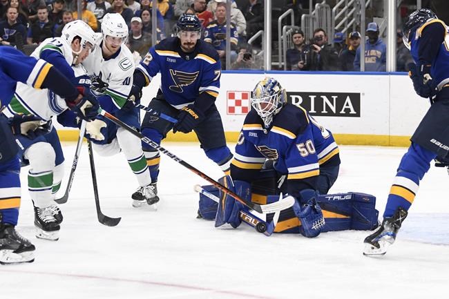 ST. LOUIS (AP) — Elias Pettersson had 10 shots. He connected on the last one.…