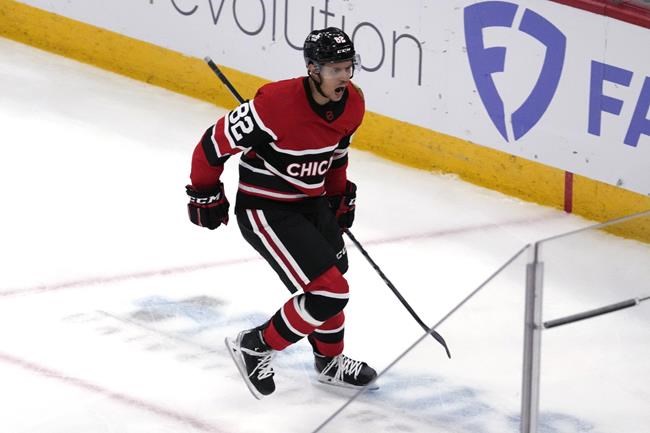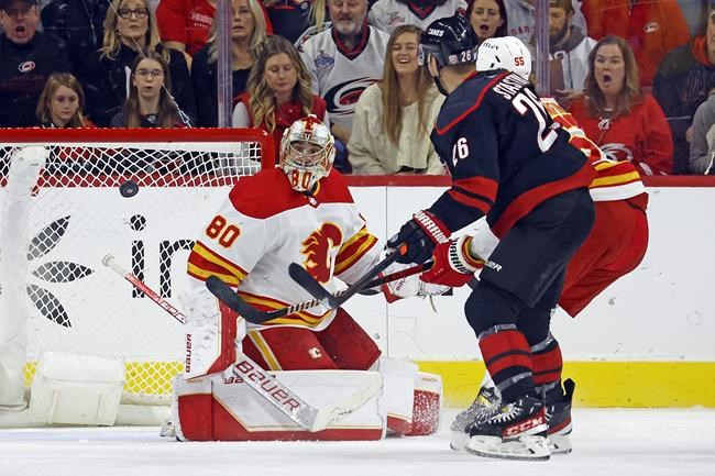 RALEIGH, N.C. (AP) — Brett Pesce’s first goal of the season snapped a third-period tie…
