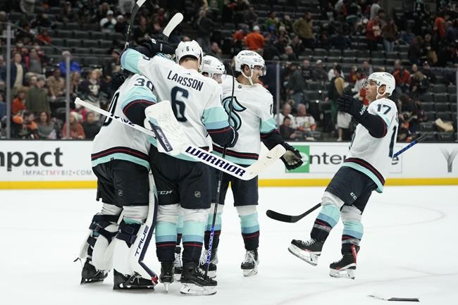 ANAHEIM, Calif. (AP) — Matty Beniers had a goal and two assists, Daniel Sprong scored…