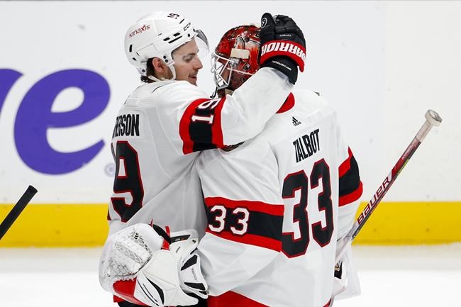 NEW YORK (AP) — Jack Hughes and Michael McLeod scored in the second period, Vitek…