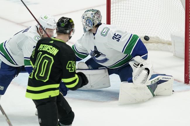 DALLAS (AP) — Elias Pettersson had two goals and a pair of milestones as the…