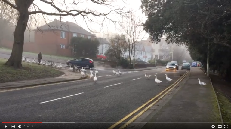 The man who regularily feeds the geese at this urban lake was late one day.…