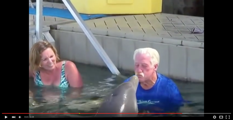 What started as a traditional Bermuda tourist activity, swimming with a dolphin, quickly escalated into a full on spitting war. John was just supposed to get a kiss from the dolphin, but when the sea mammal spit, he spit back and then things got a little out of control. The video of the hilarious dolphin...