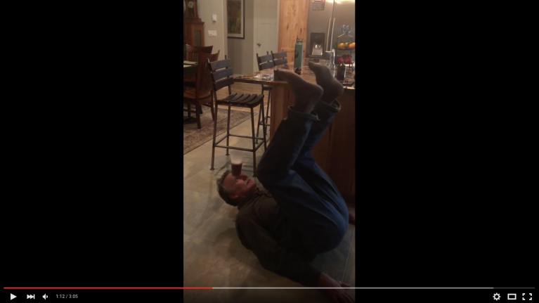 Alysemv's 60-year-old stepfather told the family gathered for the American Thanksgiving he could balance a cup of beer on his forehead and then drink it without using his hands. The yoga bear trick is a thing of beauty. %%embed1%%