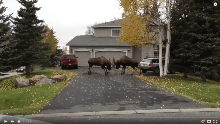 When you live in remote locations like Alaska you can expect to see a fair share of wildfire. But you probably aren't expecting to witness a moose fight in your driveway. Kelli posted this footage of the rutting males to YouTube and it's starting to go viral with almost 800,000 views. %%embed1%%