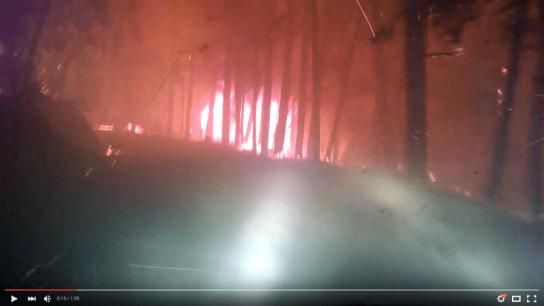 MulleFive recorded this terrifying video while he made a run for it when a wildfire in northern California roared toward his home in Anderson Springs. You can almost feel the heat and smell the smoke in this one. %%embed1%%