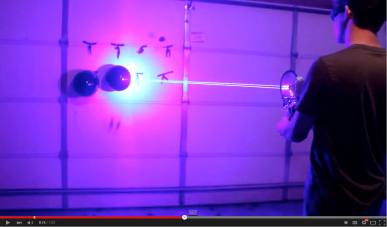 Do you remember the video of the guy who made a working light sabre with a laser? Well, he's back, but this time he's built a shotgun laser. Styropyro is a very cool nerd. %%embed1%% %%embed2%%