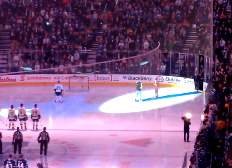 What happens when the singer's mic cuts out partway through the U.S. national anthem at a Toronto Maple Leafs' game? Canadians take over and finish singing The Star-spangled Banner of course. This amazing video has already garnered over a million views. Also today on Trending Now, Shaquille O'Neal admits to Seth Myers he loves torturing Charles...
