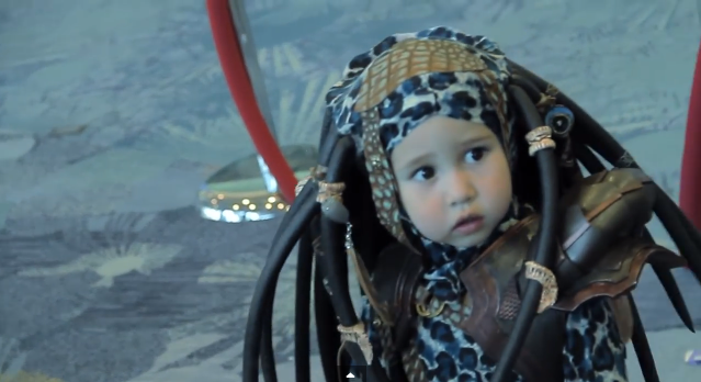 This toddler scores a win with her Comic-Con costume. Nikki and William Miyamoto created the Predator costume for their 3-year-old daught Kayla. Apparently she loves dressing up. The costume took them a month to make. Also today on Trending Now, the latest edition of Lie Witness News on Jimmy Kimmel Live. Actor Leah Remini makes...