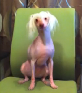 Nathan the Hairless Chinese Crested dog likes to 'wiggle it' for a treat according to the people at the Bald is Beautiful Hairless and Small Dog Rescue who found him a home. %%embed1%%