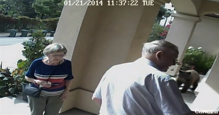 This elderly couple in Pasadena, Calif. left their home without noticing a bear on their porch. Their son-in-law shared the viedo from their security camera. %%embed1%%