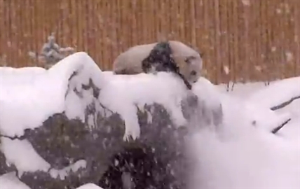 It doesn't get much cuter than a giant panda bear cub playing in the snow.