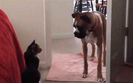 Check out this compilation of dogs that are just too scared of cats to get by them. In defence of the dogs, some of those cats are pretty tough. "Dog, you shall not pass!" %%embed1%%