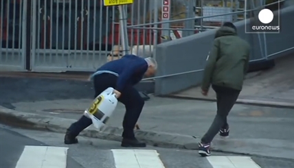 Christmas shopping was a little intense in Aalesund, Norway thanks to a wind storm packing powerful winds hit the region. Some people in the city's downtown were walking in place as they battled the breeze. %%embed1%%