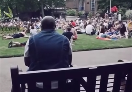 He's just a guy sitting on a bench in a crowded park singing Bon Jovi's Livin'…