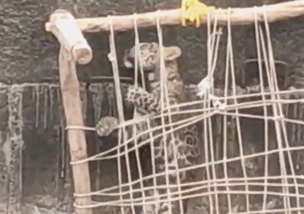 The leopard was spotted clinging to the side of an irrigation well in India and…
