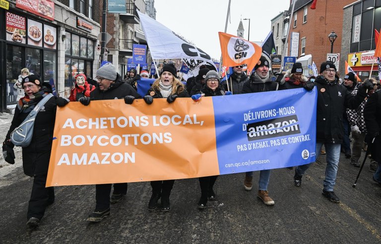 MONTREAL — Protesters accusing Amazon of union-busting gathered in downtown Montreal today to continue their…