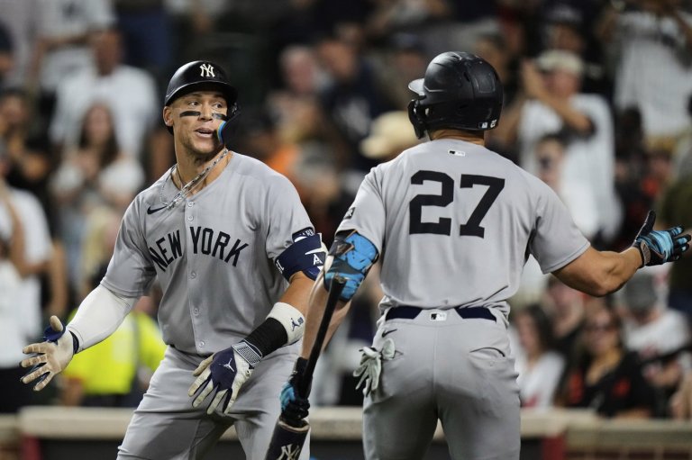 BALTIMORE (AP) — Aaron Judge hit his 49th home run, Giancarlo Stanton ripped a three-run…
