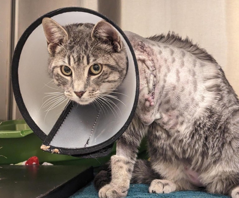 A German shepherd was surrendered to the BC SPCA because her tail bone was exposed…