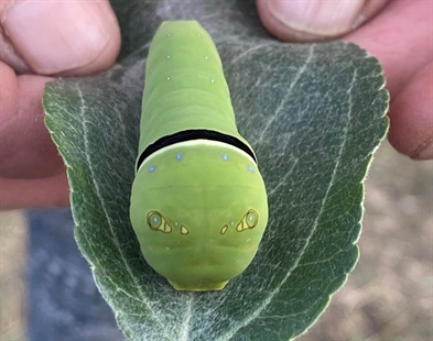 Pritchard resident Sarah Wade saw a unique looking caterpillar with big eyes painted on it…