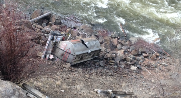 A transport truck carrying diesel crashed and spilled its load on Highway 97 between Penticton…