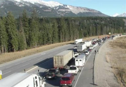 A semi truck jackknifed into oncoming traffic on Highway 1 west of Golden today, hitting…