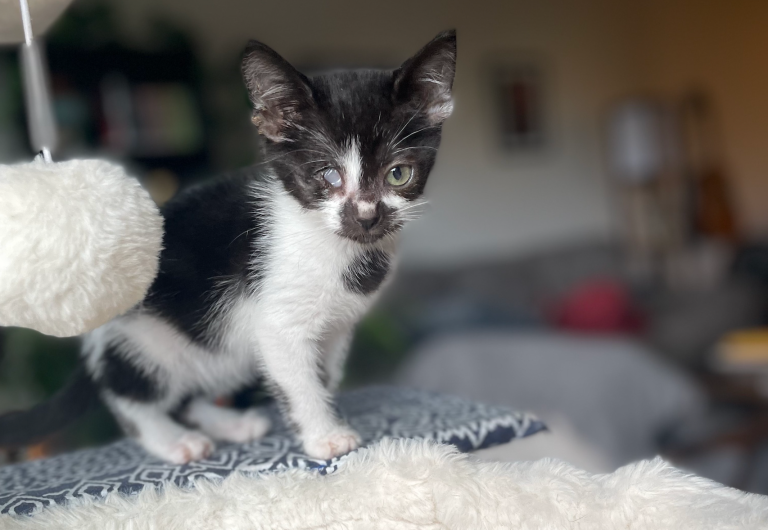 A six-week-old kitten abandoned in a forested area near Victoria is currently in the care…
