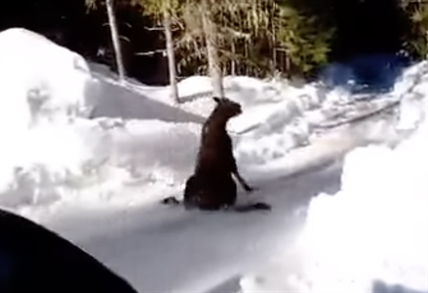 This poor moose was just going about its business when it hit an icy patch…
