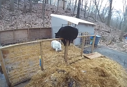 A pair of pigs in a pen bravely fought off what appears to be an…
