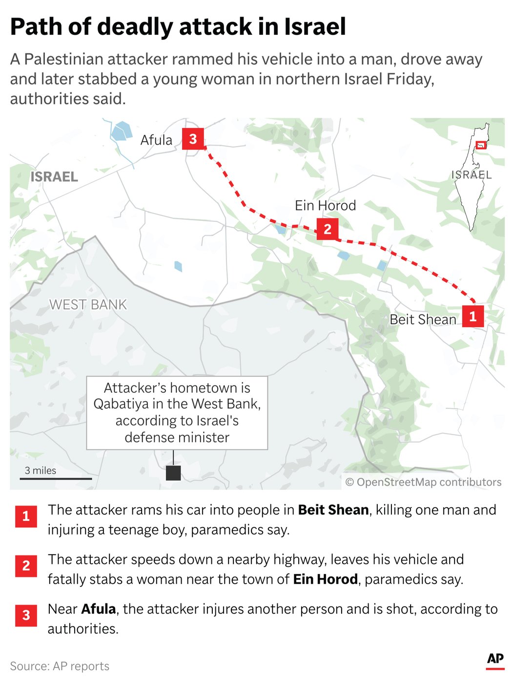 JERUSALEM (AP) — A Palestinian attacker rammed his car into a man and then stabbed…